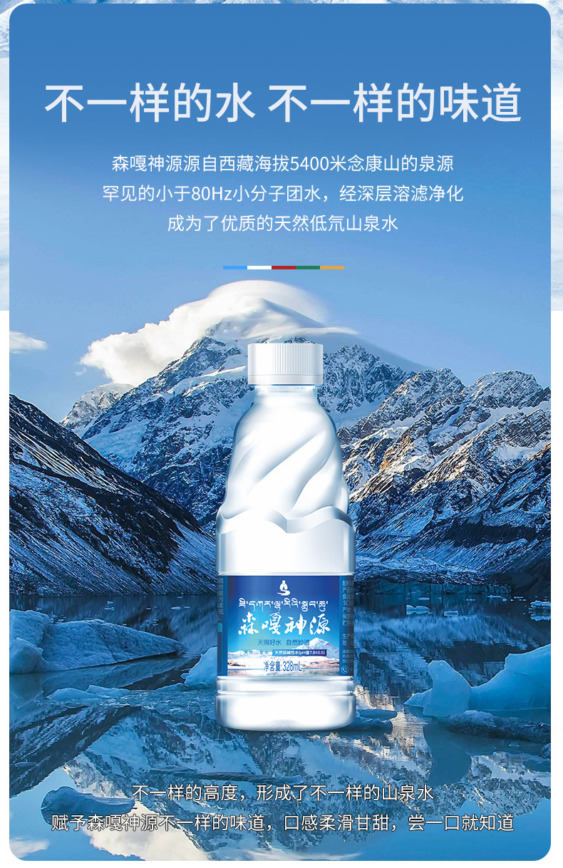 森嘎神源天然甘甜山泉水328mlx15瓶*4箱 小分子团 低氘 低钠