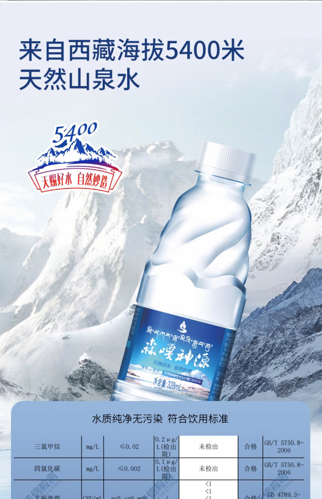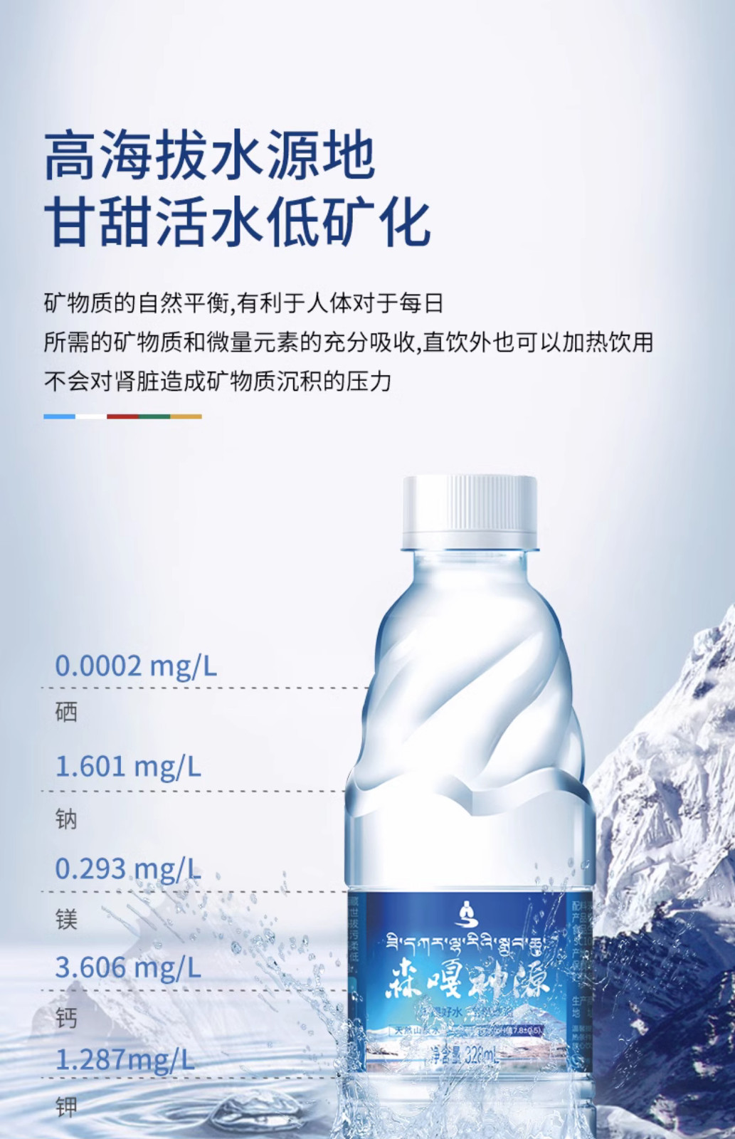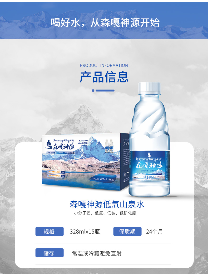 商品名称:森嘎神源天然甘甜山泉水328mlx15瓶*4箱 小分子团 低氘 低钠