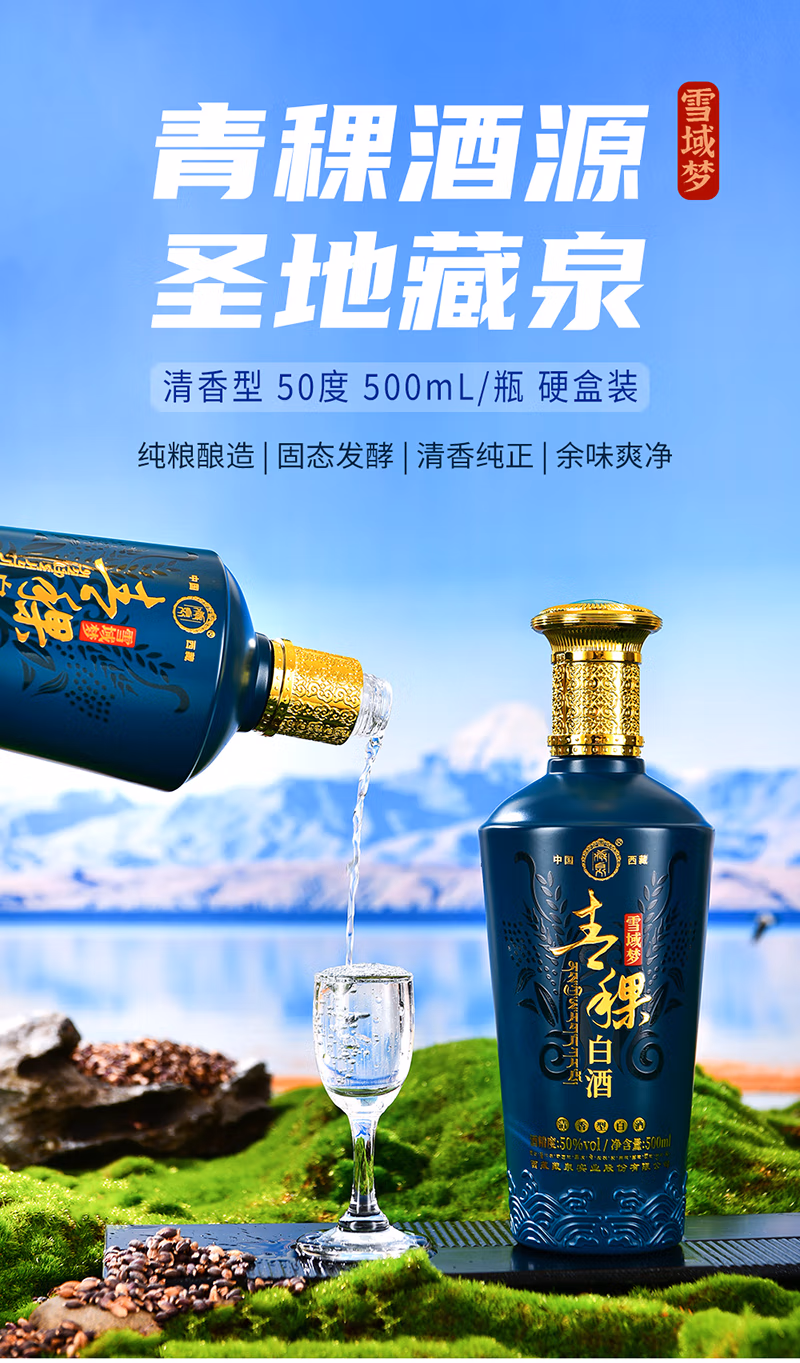 商品名称:藏泉雪域梦西藏特产青稞酒清香型白酒礼盒 50度 500mL*2瓶