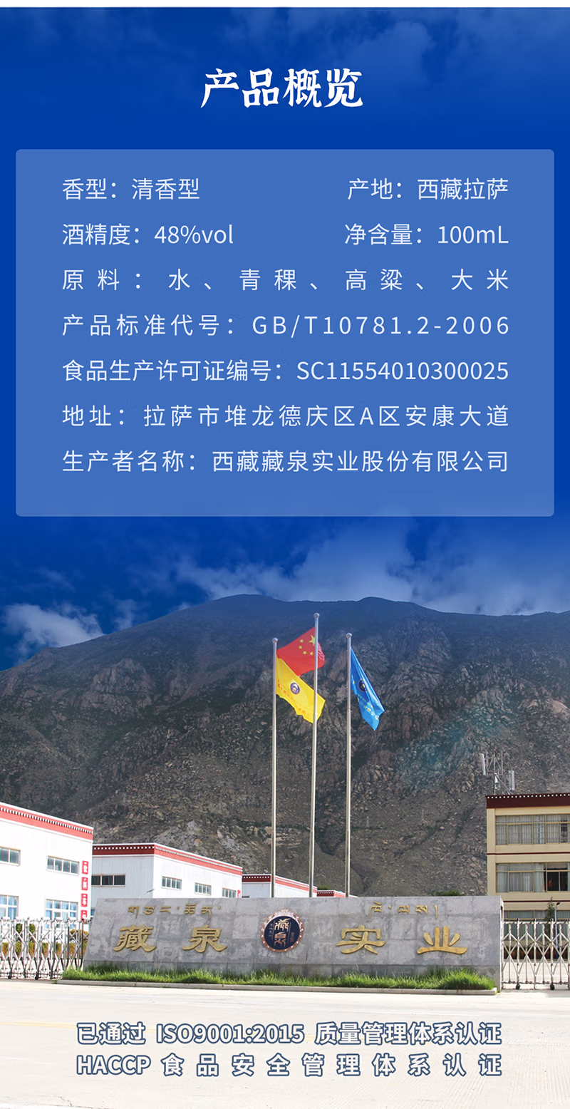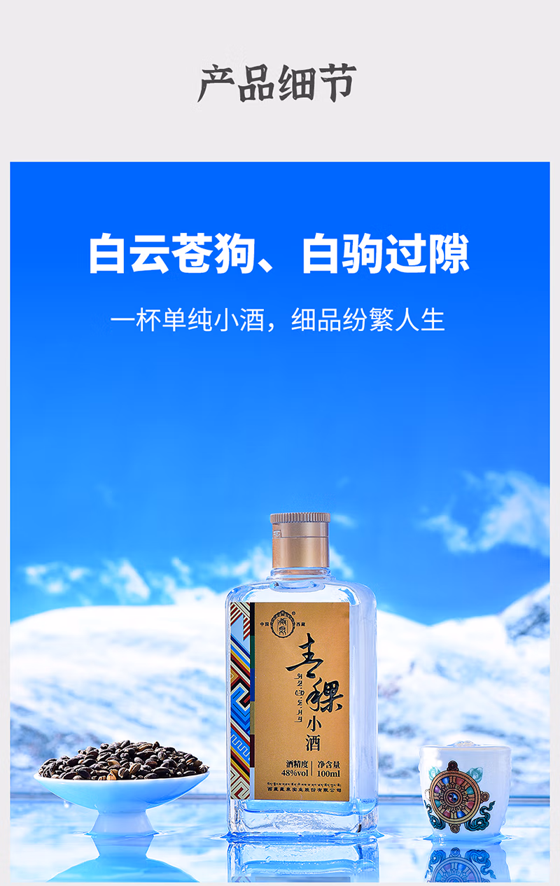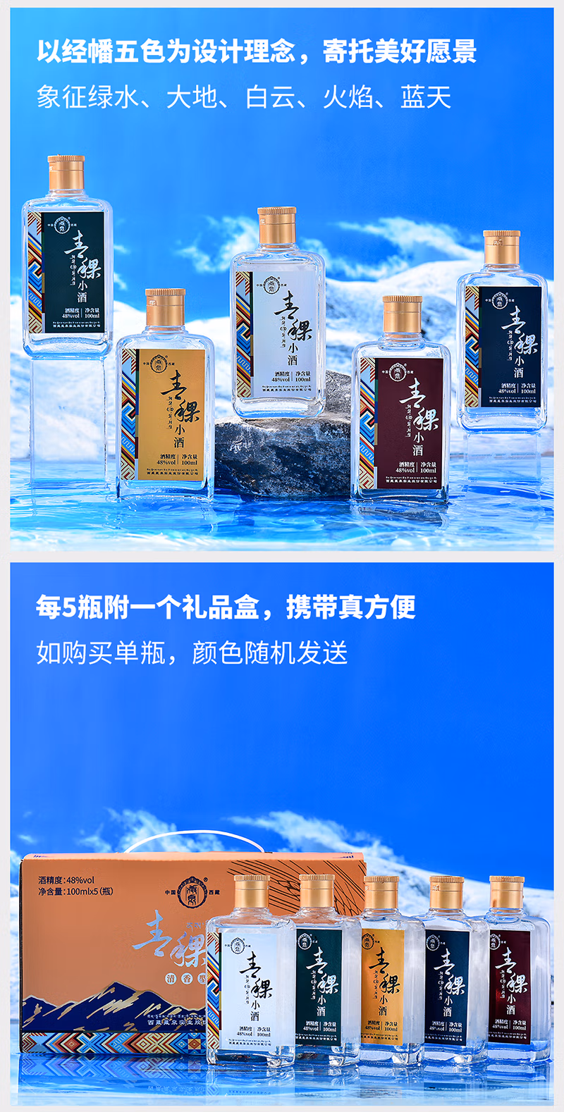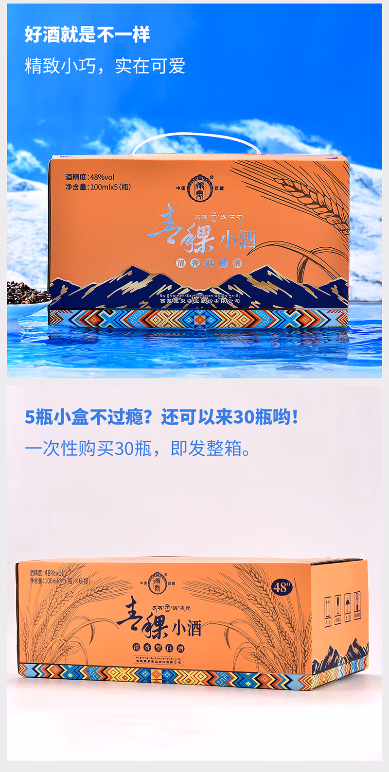 商品名称:藏泉西藏小青稞酒48度100mL瓶*5瓶礼盒装