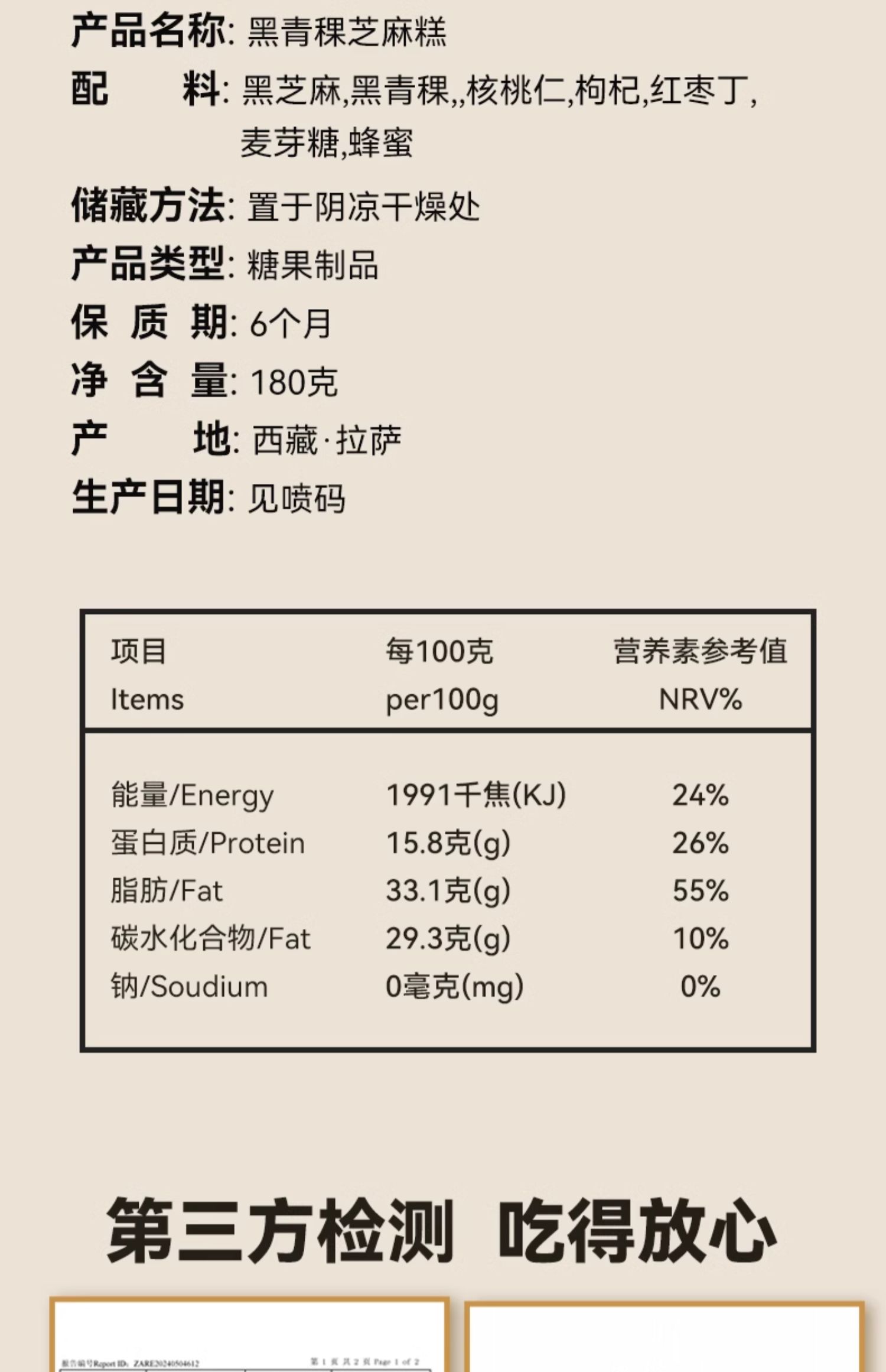 商品名称:更桑-黑青稞芝麻糕-180g/袋*3