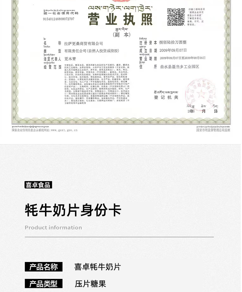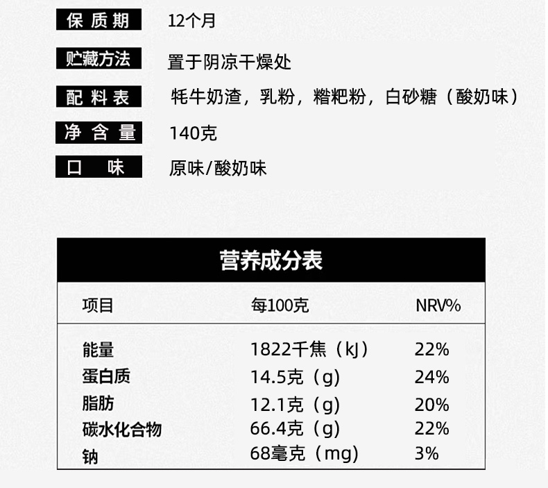 商品名称:更桑-喜卓牦牛奶片(原味)-140g/袋*3