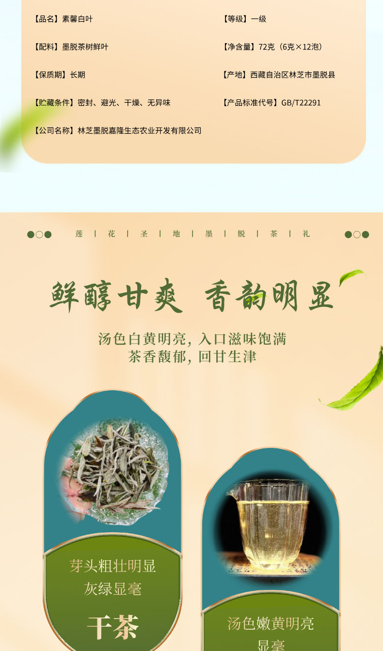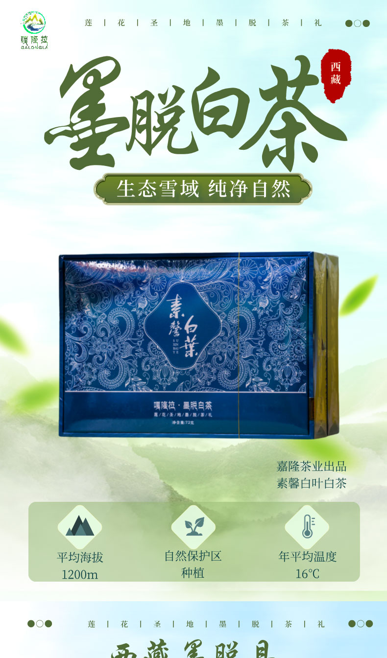 商品名称:素馨白叶(墨脱白茶)72克/盒