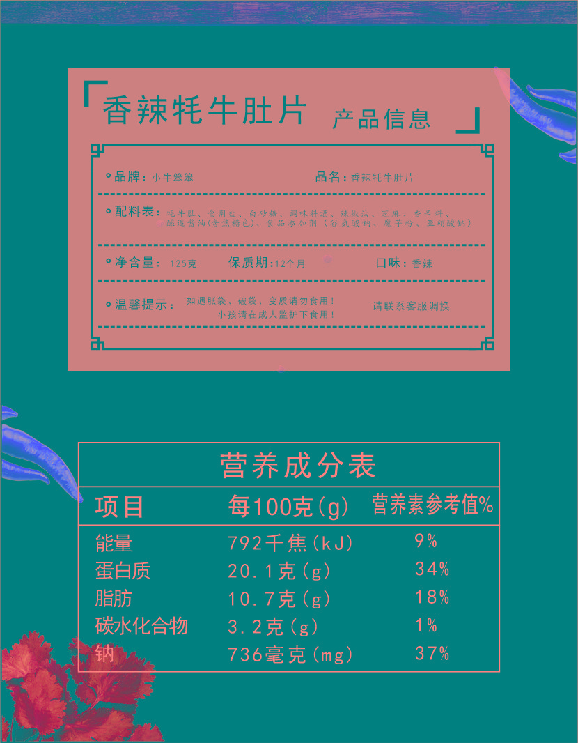 商品名称:小牛笨笨香辣牦牛肚片125g /袋