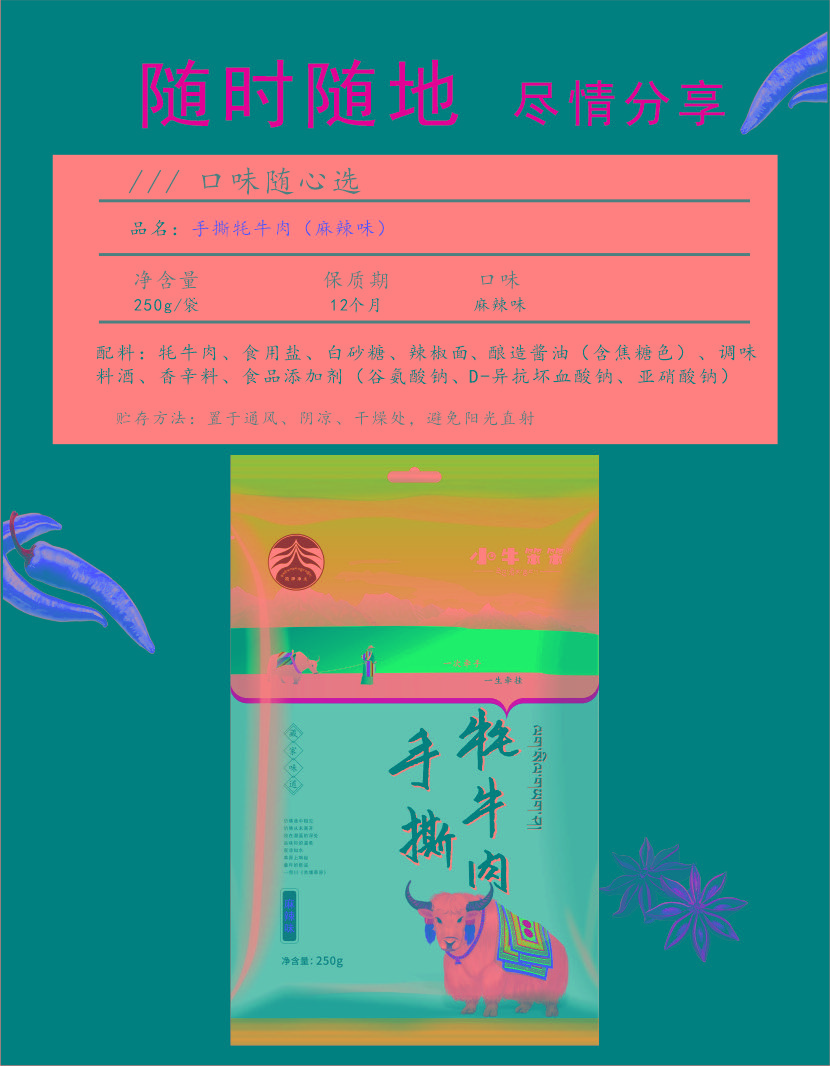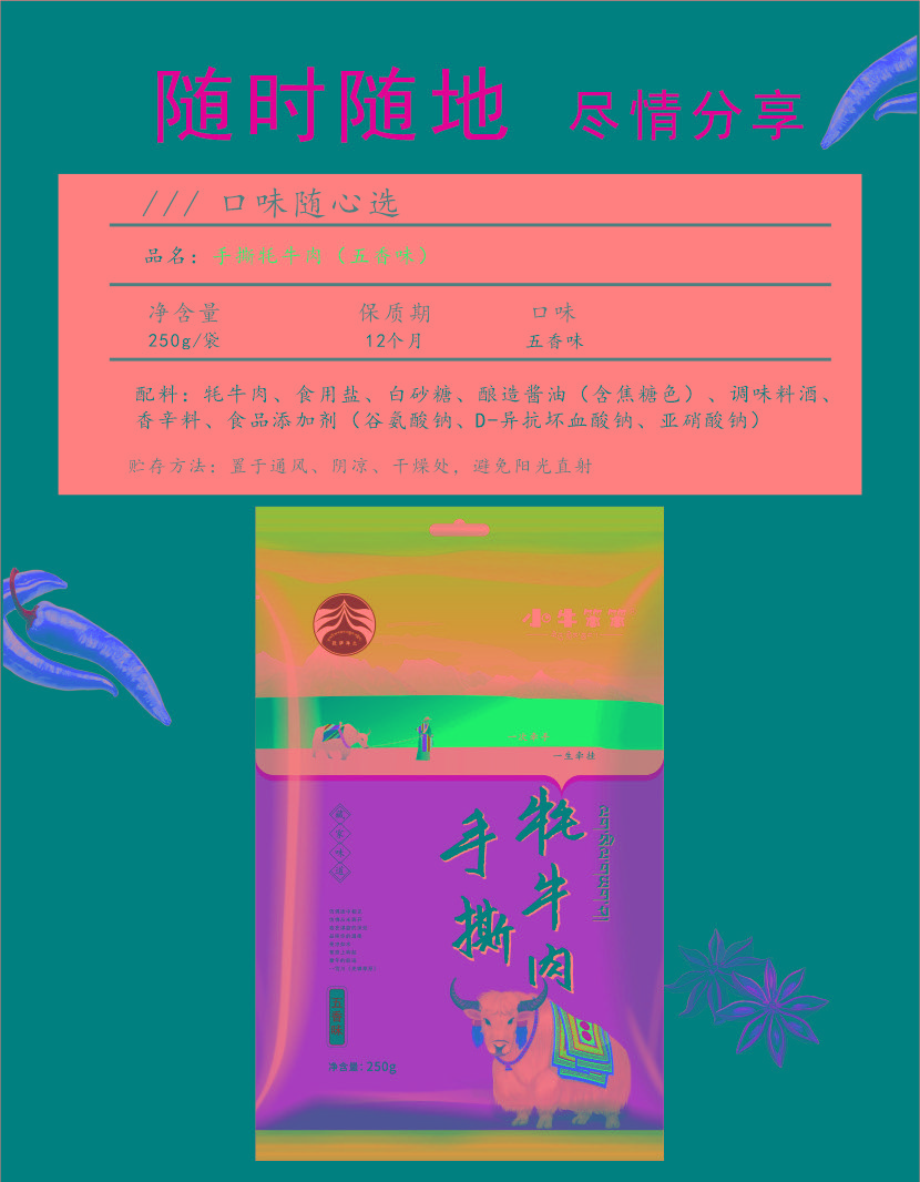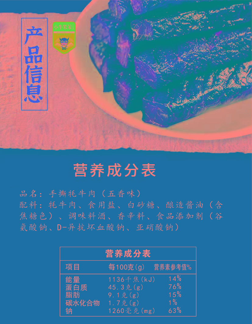 商品名称:小牛笨笨 手撕牦牛肉(五香味)250g /袋
