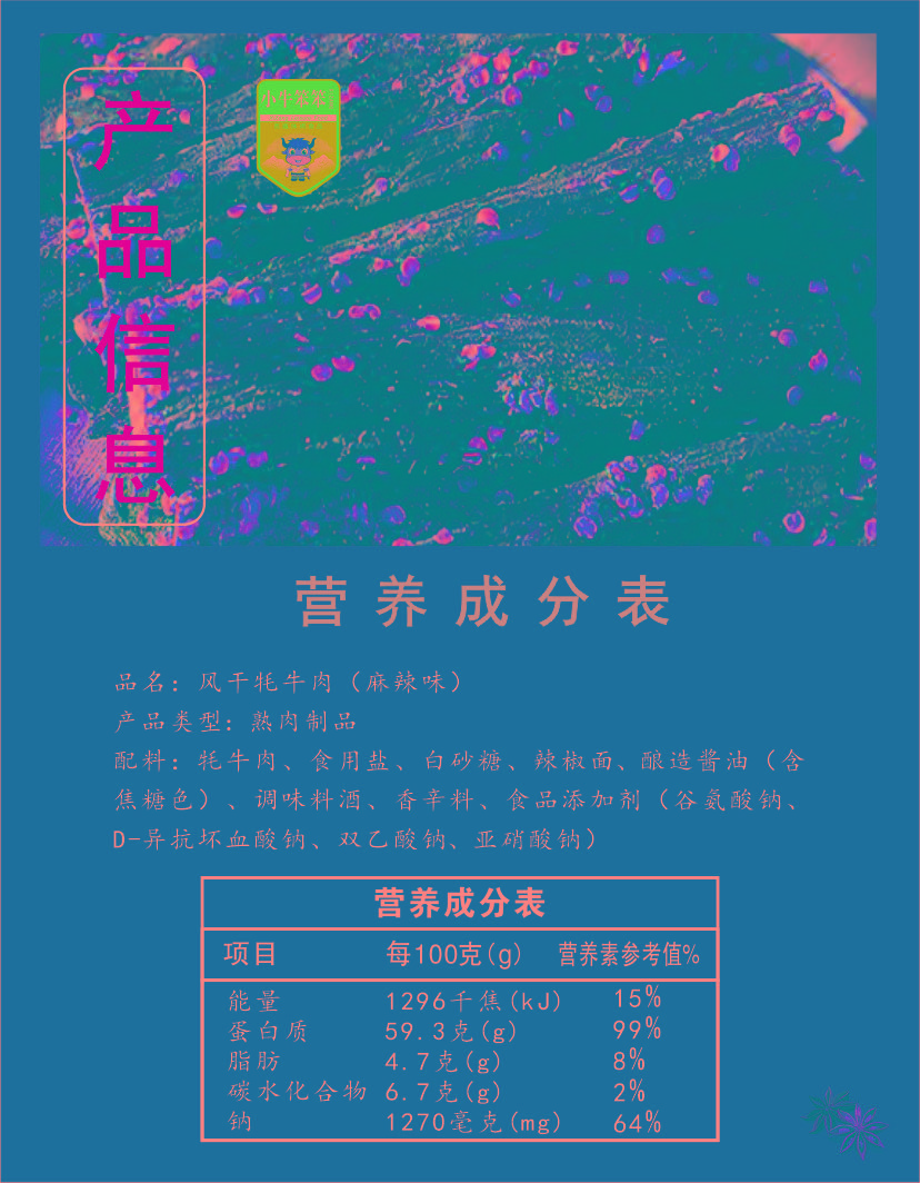 商品名称:小牛笨笨 风干牦牛肉(五香味)250g /袋