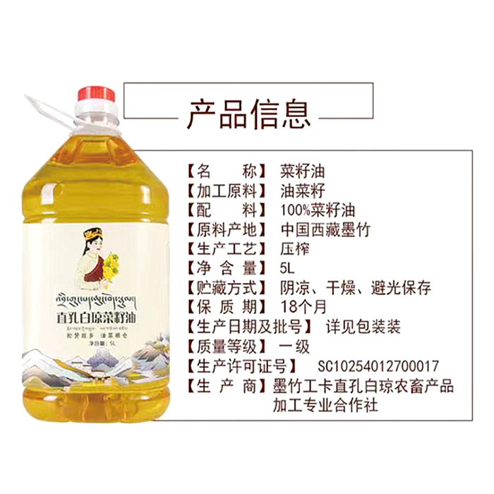 商品名称:墨竹工卡 直孔白琼菜籽油非转基因 5L