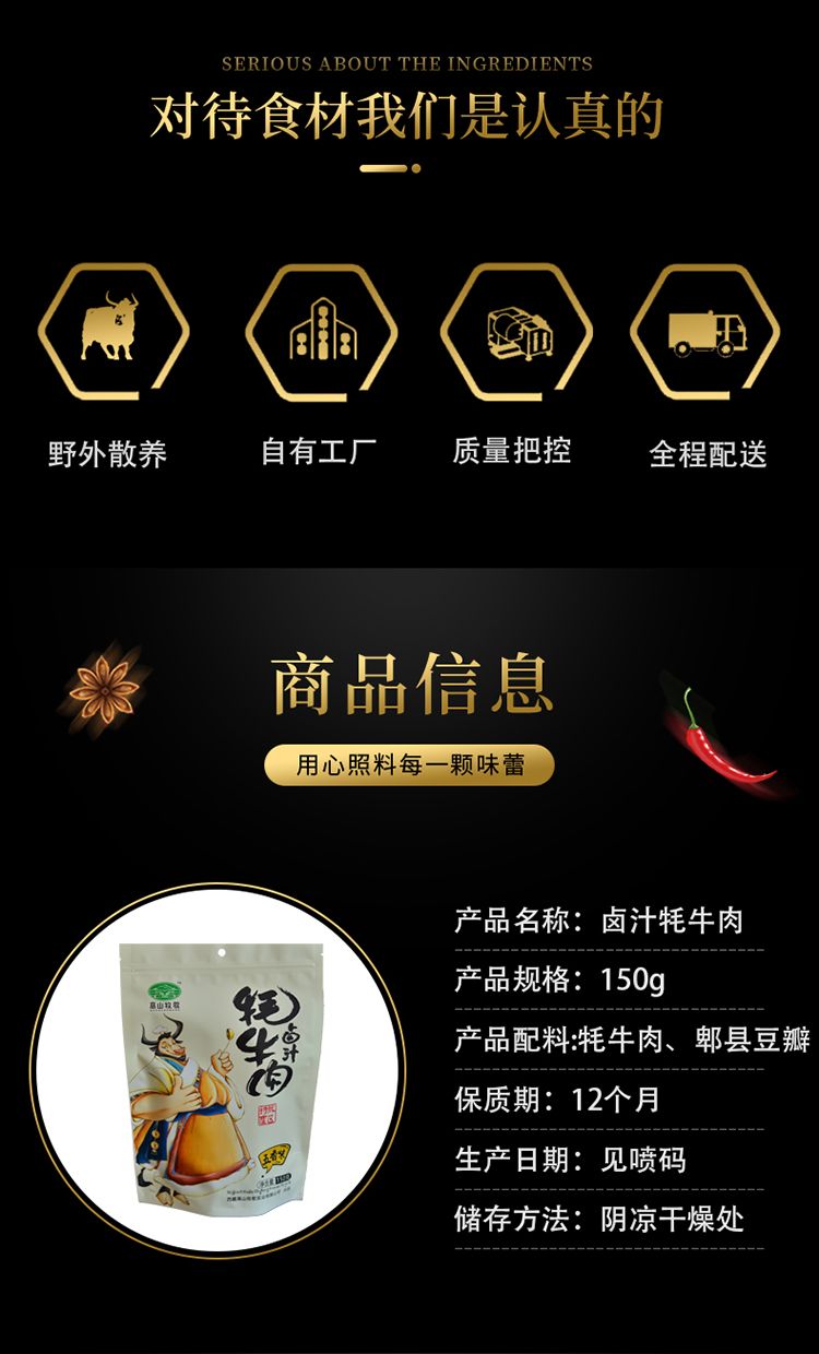 商品名称:高山牧歌卤汁牦牛肉五香味150g*2袋