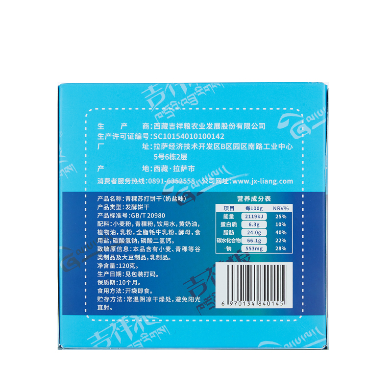 商品名称:吉祥粮青稞苏打饼干-奶盐味120g*3盒