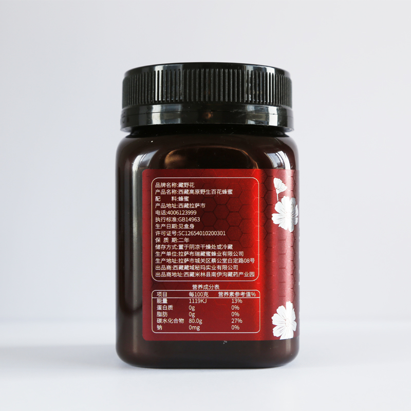 商品名称:藏野花野生百花蜂蜜500g/瓶