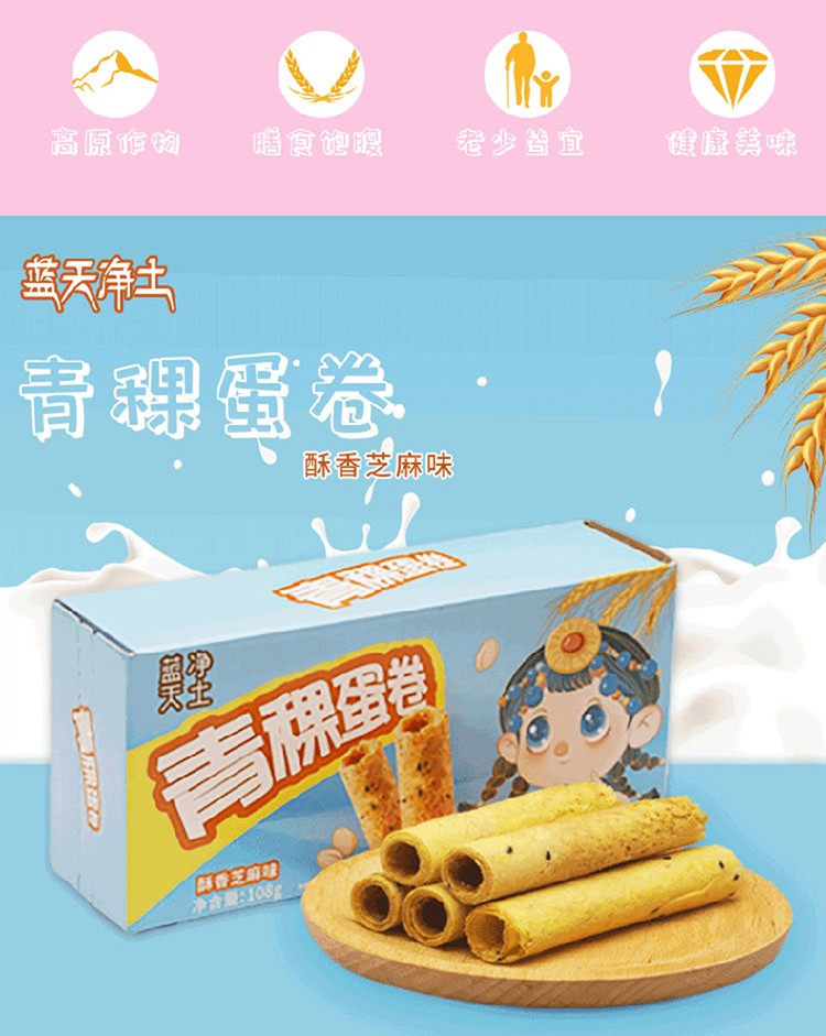 商品名称:蓝天净土 青稞蛋卷(酥香芝麻味)108g/盒*2