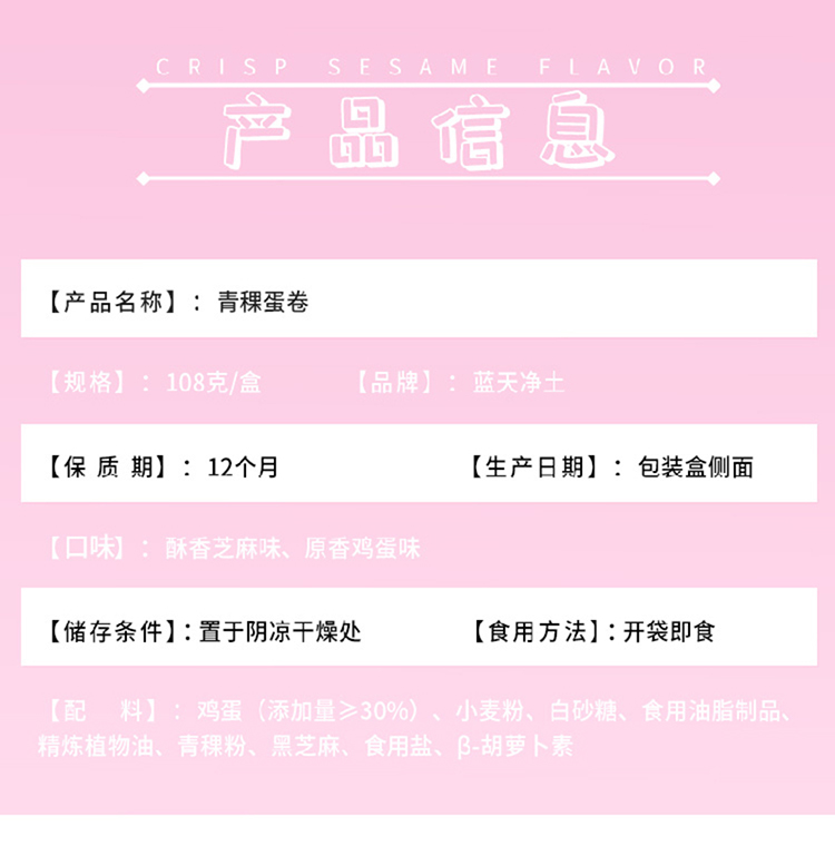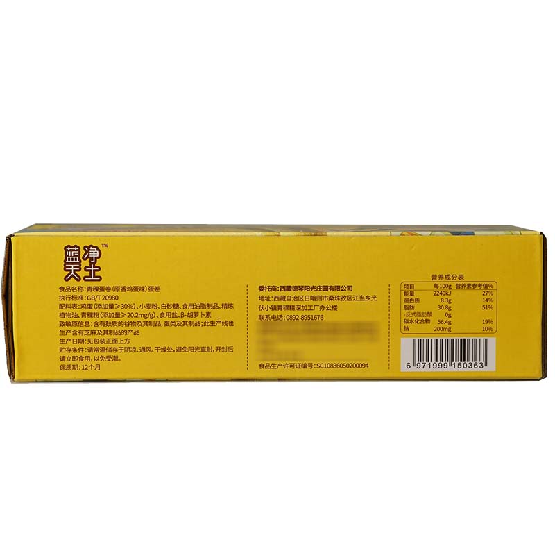 商品名称:蓝天净土 青稞蛋卷(原香鸡蛋味)108g/盒*2