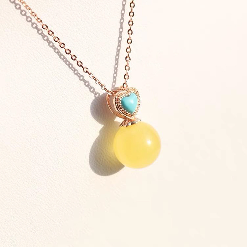 商品名称:S925古法银爱心绿松镶嵌蜜蜡吊坠(不含链) 1件/盒