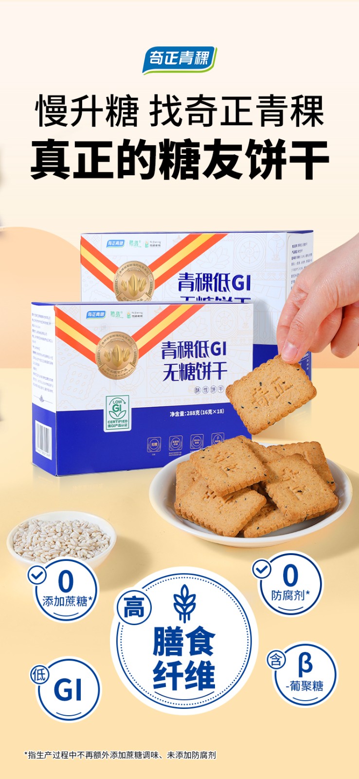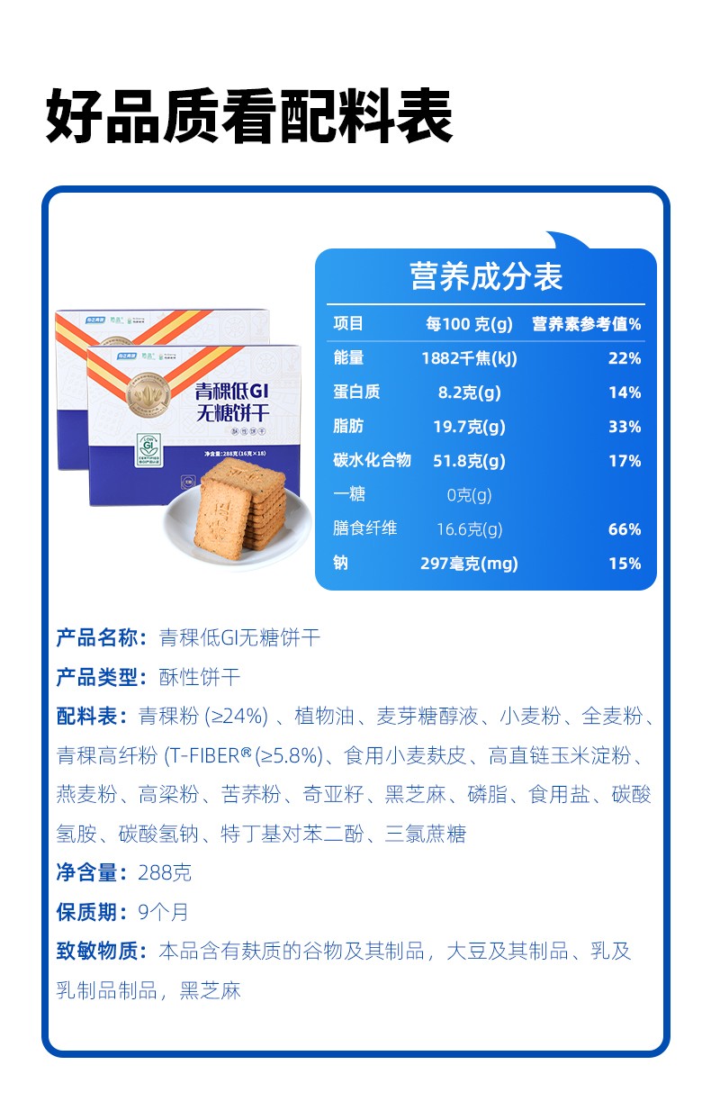 商品名称:奇正青稞低GI无糖饼干288g*1盒